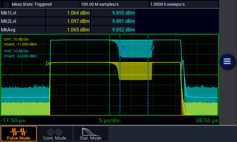 Boonton RTP 系列量測緩衝模式應用程式以互補的軟體套件形式,充分發揮了 RTPP 的強大功能;在使用 RTP 系列量測緩衝模式應用程式時,使用者可以僅捕獲相關的突發資訊,例如每個脈衝週期內的峰值、平均和最小功率,以及開始時間和量測持續時間;因此,在非相關的時間間隔內會捨棄多餘的資訊,從而減少了擷取資料點所需的儲存空間;如此一來,即可長時間持續進行量測,使其成為理想的裝置特性分析和監控工具。