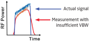 圖 3:紅色軌跡因影像頻寬 (VBW) 不足,無法追蹤藍色的實際訊號。