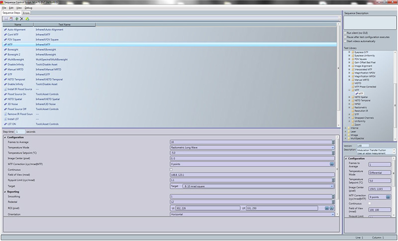 為了能順暢地在 IRWindows 中運用其光電 TPS 環境,開發團隊首先在 IRWindows 應用程式中建立了一系列測試序列(意指一連串預先定義的光電測試項目),並將其妥善保存,所有的測試序列均在 IRWindows 平台內完成建立與功能驗證,在此整合步驟完成之後,便能透過標準的函數呼叫,由 National Instruments 開發的 TestStand 測試管理軟體來執行這些預設的序列,這種技術的巧妙之處在於,它讓使用者能夠充分利用 IRWindows 中對光電測試極為友善且功能強大的圖形化介面進行操作與監控。