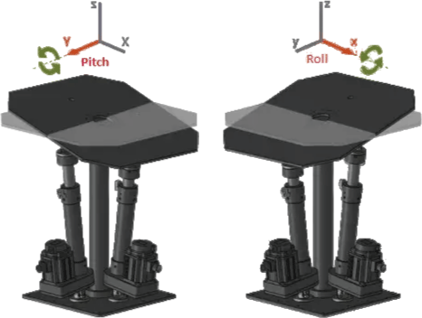 雙自由度(2DOF)穩定平衡器 透過精確控制 俯仰(Pitch)與滾轉(Roll) 兩個軸向的運動,以維持穩定性與控制力,其核心機制在於能夠主動抑制操作過程中的擾動與振動,當系統偵測到俯仰或滾轉的偏移時,會立即作出修正動作,以穩定平台或物體。