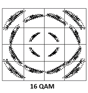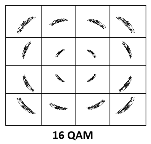 為了達到類似 QPSK 訊號的低 SER,通訊系統將必須整合一個具有較低相位雜訊的 LO,這一點可在下方的 16 QAM 圖中觀察到。