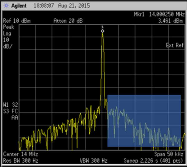 若被測訊號的相位雜訊相對於載波振幅較低,則有效的相位雜訊量測範圍將受到頻譜分析儀雜訊底層的限制。