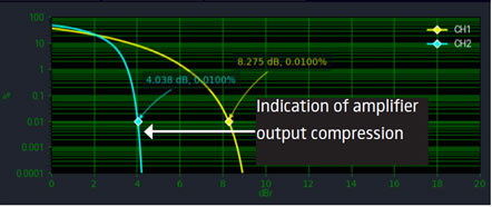 圖 6:CCDF 曲線顯示放大器的輸出 (CH2) 處於壓縮狀態。