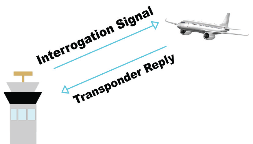 SSR 的核心是安裝於飛機上的應答器,這是一種接收射頻訊號並輸出一組特定響應的裝置,在 SSR 運作流程中,飛機首先會接收到由地面站發射的詢問訊號,應答器會解碼此詢問訊號以確認地面站所需的具體資訊,並回傳一組編碼後的回應(如圖 1 所示),透過這種方式,SSR 能夠確定飛機的識別碼高度