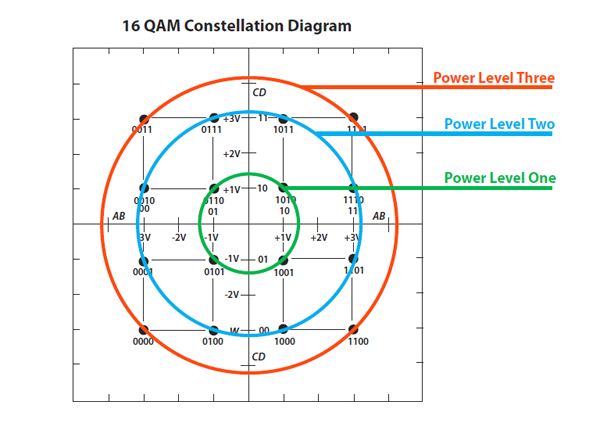 圖 3 - 16 QAM 訊號的星座圖,展示三個不同功率位準