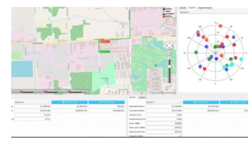 透過OHB XPLORA One的XPLORA Core軟體操作介面示意,工程師可透過地圖定義車輛行駛軌跡(左側面板),並即時監控模擬的衛星星空圖(右上角Skyplot,顯示不同星座衛星)及接收機狀態(下方Position/Velocity/Time等資訊),以進行GNSS+IMU耦合演算法的開發與驗證。