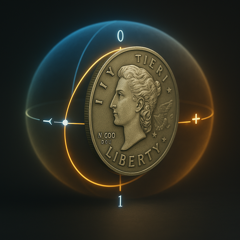 然而,量子電腦的基本單位 — 「量子位元」(qubit) — 卻遵循著一套更奇特、更強大的規則,與其將它想像成一個開關,不如把它想像成一枚正在空中旋轉的硬幣,當硬幣還在旋轉時,它既不是正面也不是反面,而是處於一種包含「既是正面也是反面」所有可能性的狀態,這種同時處於多種狀態的現象,被稱為「疊加」(superposition)。
