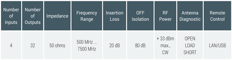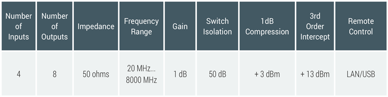 4X8 切換矩陣 - 非阻斷式設計 - 頻率範圍 20 MHz~8000 MHz