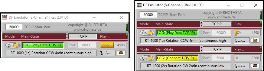 「DF Emulator」是一套能在 Windows 個人電腦上模擬測向系統的軟體,透過播放預先錄製的日誌檔來模擬運作,最簡單的情況下,DF Emulator 會使用電腦的串列通訊埠(COM port)透過 RS232 傳輸資料至另一台電腦或系統,以顯示測向資料;此軟體主要用於專案開發,如將測向資料整合至雷達顯示或其他地圖與控制介面上,目的在於協助系統整合商提升開發效率。