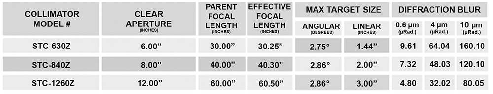 STC 準直器 採用無中央遮蔽的 全反射離軸牛頓式光學設計,非常適合 0.4 至 14 微米的寬頻應用,此具成本效益的設計,在光軸上實現了 繞射極限 的優異效能,使其成為高空間頻率目標投影的理想選擇。