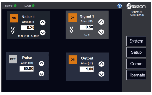 UFX7000B 標準射頻配置,包含一個寬頻雜訊源與雜訊路徑衰減器,具備 最高 127 dB 的衰減範圍,步進 0.1 dB,並可選配不同的衰減範圍與步進設定,以符合特定測試條件;此外,使用者可依需求選擇 低通(Low Pass)、高通(High Pass)、帶通(Band Pass)或帶阻(Band Reject)濾波器,自由組合以最佳化測試結果。