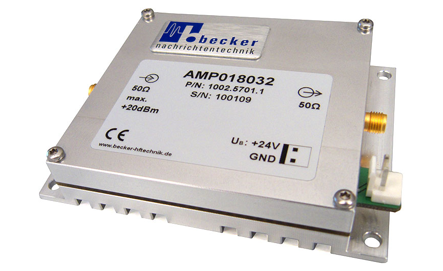 AMP018032 為 Becker 推出的小型化高線性寬頻放大器模組,採用 50 ohm 技術架構,適用於各類射頻通訊、實驗與量測等專業應用場景,此機種具備堅固的電氣與機械設計,可於長時間操作中維持穩定性能,並支援涵蓋多個頻段(octaves)之寬頻操作範圍。