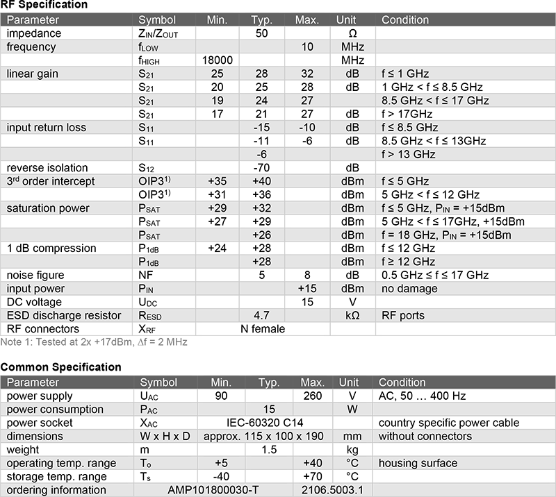 桌上型超寬頻線性放大器 (1W, 10~18000 MHz)