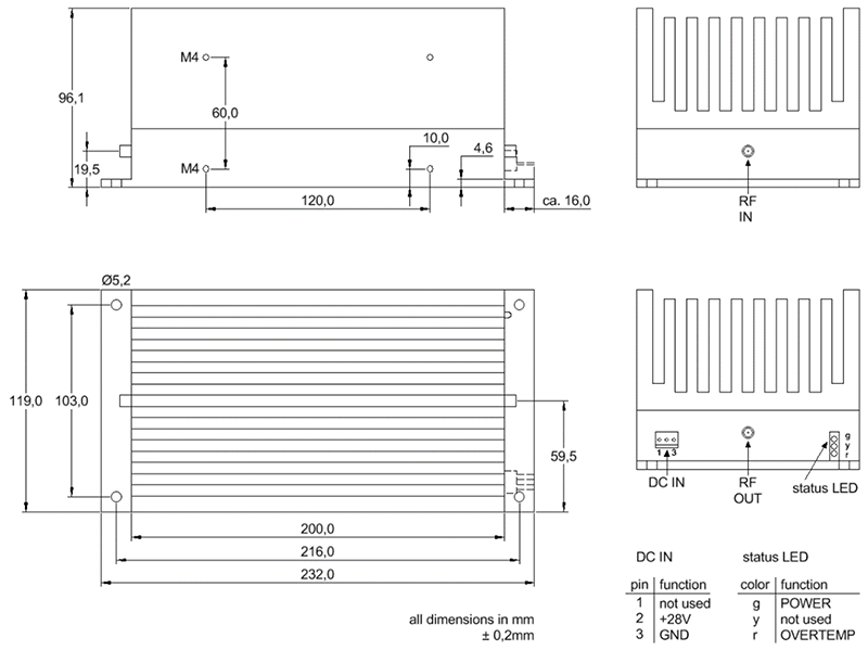 內建濾波器與低雜訊電源模組可有效抑制雜散訊號(Spurious Signal)與低頻/高頻干擾;供電端具備反向極性保護設計,能防止安裝錯誤造成損壞,提升模組整體耐用性與操作安全性;此外,模組前面板設有 LED 燈號,可即時指示電源狀態,方便現場監控與維護作業。