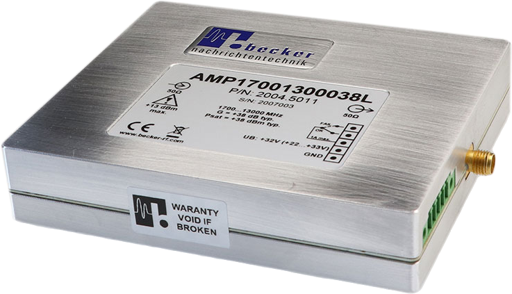 AMP17001300038L 為 Becker所推出之高性能放大器模組,採用 50 ohm 系統架構,設計用於需長時間穩定運作之專業級通訊與測試應用,具備堅固耐用的電氣與機械結構,可承受嚴苛操作條件並延長模組壽命;模組支援 1700 至 13000 MHz 超寬頻頻段,涵蓋多個倍頻範圍,內建濾波器與低雜訊電源設計可有效抑制雜散訊號,確保輸出訊號純淨穩定。