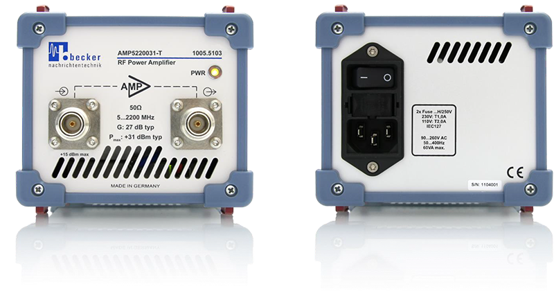 AMP5220031-T 為 Becker 推出之小型化放大器(Amplifier),採桌上型機構設計,搭配 50 Ohm 匹配技術,專為實驗室量測、測試與開發環境而設計;該機種具備堅固穩定的電氣與機械結構設計,可於長時間操作下依然維持高可靠度與一致性性能;其放大器核心設計可在涵蓋多倍頻的寬頻頻段(5 至 2200 MHz)範圍內穩定運行,適用於多種射頻應用場合。