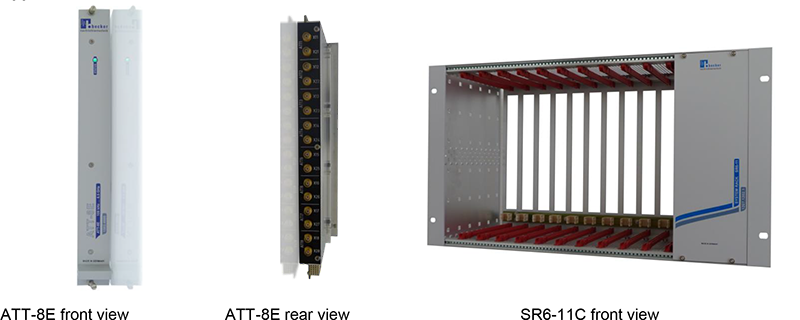 ATT-8E 模組預設整合於 SR6-11C 系統平台中。SR6-11C 提供 11 組模組插槽,可彈性配置射頻開關、矩陣模組、多工器、步進衰減器、BIAS-T、電平偵測器、雙向分配器/合路器等射頻處理模組,構建完整之訊號處理架構與集中控制系統。