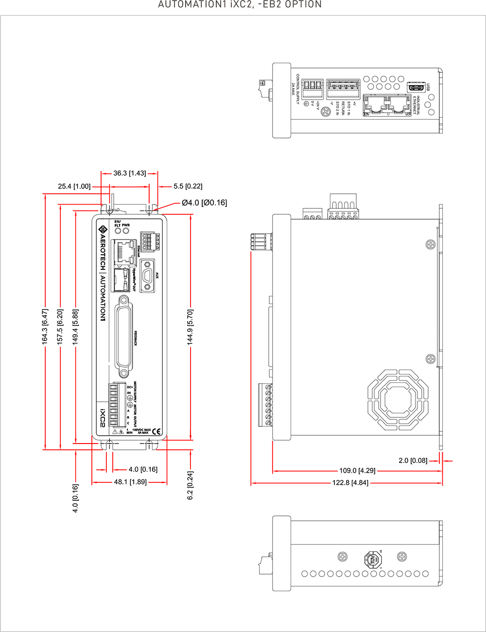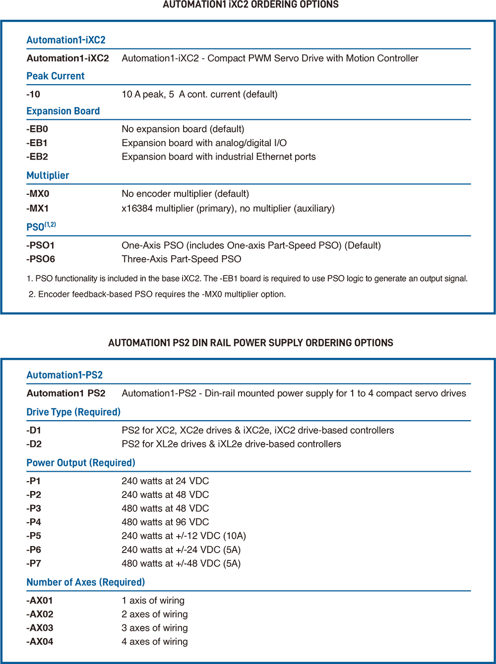 透過 HyperWire 技術,能輕易地將 iXC2 與其他 Automation1 驅動硬體進行多軸配置連接,其內建一組 24 V、1 A的煞車輸出 (brake output),該機種已通過 CE 核可、NRTL 安全認證以及 EU 2015/863 RoHS 3 指令認證,此外,功率放大器的頻寬可透過軟體進行設定,效率最高可達 95%。