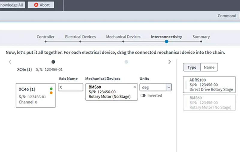 透過 Machine Setup 精靈,您可以迅速將驅動電子元件和精密運動控制機構加入您的運動控制系統。當裝置透過 HyperWire™ 匯流排連接時,系統會自動識別並添加馬達驅動器,這個特性使得專業開發團隊乃至於學術研究人員都能輕鬆上手運動控制系統的建構。