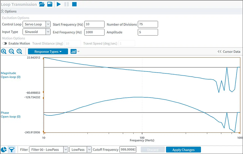 頻率響應工具支援多種響應與數位濾波器類型,並可自動擬合數位濾波器。此工具提供如三種激發方式、十一種不同的響應類型,以及圖形化迴路整形等進階功能,讓複雜系統的評估與優化變得輕鬆簡易。