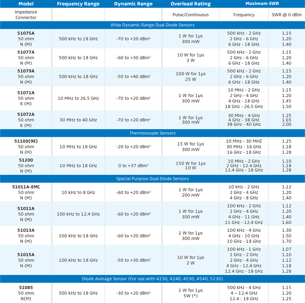 峰值、CW 及平均功率感測器系列