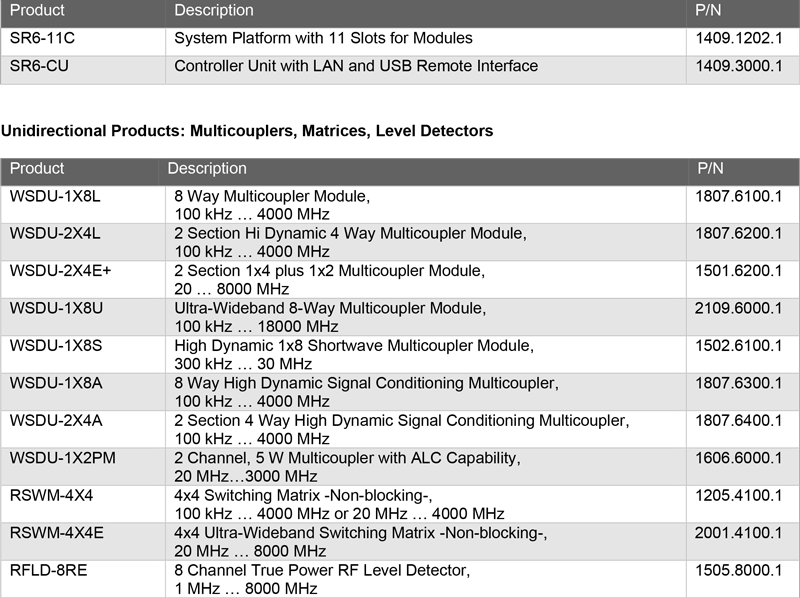 - 雙向分波/合路器等訊號調理模組