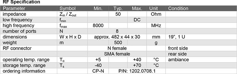 8 埠射頻轉接模組,連接 N 型與 SMA