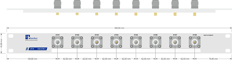 該模組高度為 1U,可安裝於 19 吋標準機架系統中,透過 CP-N,可作為系統內部射頻介面與外部硬體設施之間的高效轉接點。CP-N 的前面板配備標示條,方便使用者命名與識別各連接埠位置,每個埠提供 SMA 母接頭轉 N 型母接頭的轉接功能,實現高可靠性的訊號連接與配線彈性。