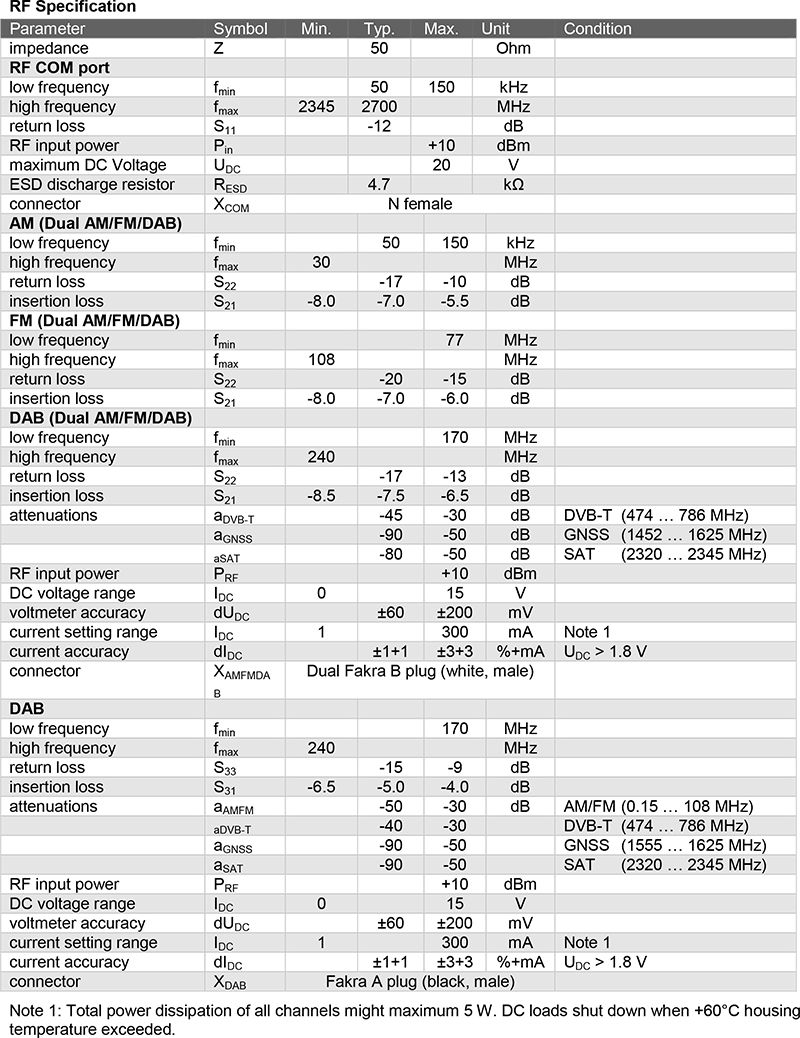 - 兩組模擬類比廣播(AM/FM)與數位廣播(DAB3)訊號輸出埠
