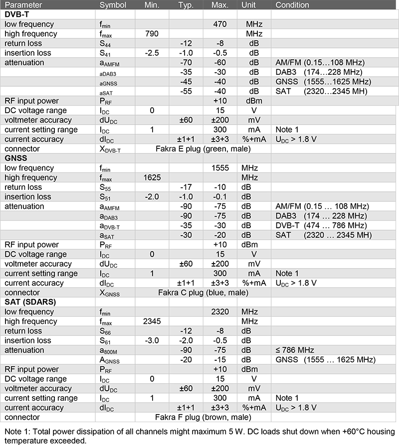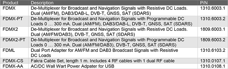 FDMX2-PT 提供即插即用的 RF 解多工解決方案,能夠高效分配車載資訊系統中的多訊號輸入至各個測試通道,該機種具備以下 RF 埠配置: