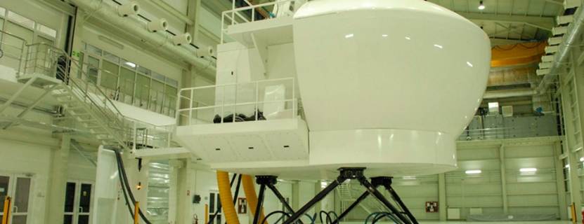 ![]() 圖中為一座全動態飛行模擬器(Full Motion Flight Simulator),其結構安裝於六自由度運動平台(6DOF Motion Platform)上,能夠模擬飛機在飛行中的各種動態反應,包括:俯仰(Pitch)、滾轉(Roll)、偏航(Yaw)、垂直移動(Heave)、橫向移動(Sway)與縱向移動(Surge),提供極高擬真的飛行訓練體驗;該模擬器主要用於固定翼與旋翼飛行訓練(Fixed & Rotary Wing Flight Training),可用於飛行員的基本與進階操作訓練、特定機型認證、緊急應變演練,並支援不同天候條件與飛行環境的模擬。 |