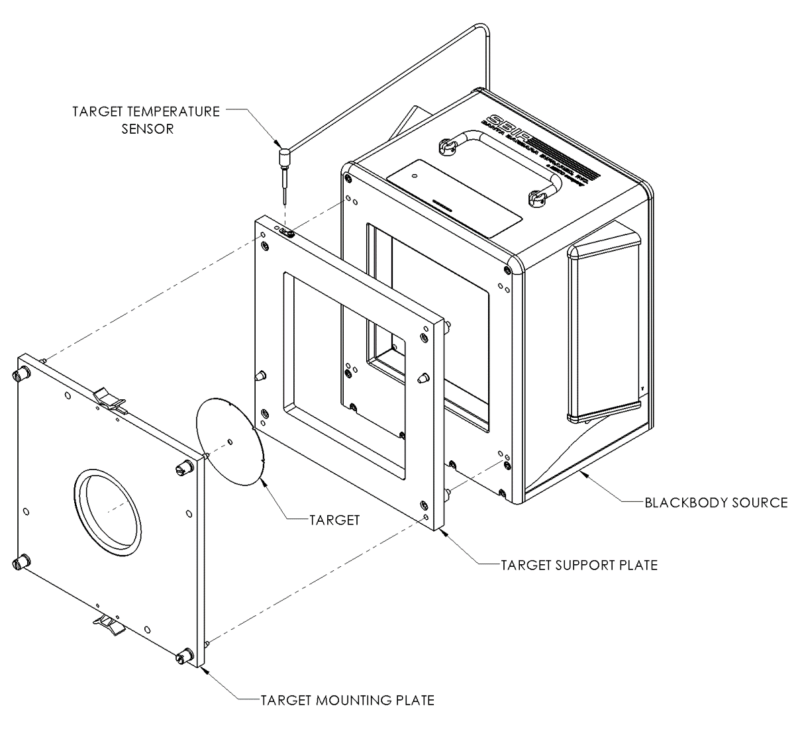 發射式目標板(Emissive Targets)為紅外線測試的業界標準;SBIR 14000Z 系列目標投影機即設計用於搭配此類目標板。此類目標板表面塗覆高放射率結構黑塗層,與黑體表面性質一致,能提供熱穩定性極高且背景均勻的輻射影像。其溫度由高精度感測器量測,目標板背後黑體會維持與其不同的溫度差;兩者的輻射差異在紅外影像中清晰顯現。