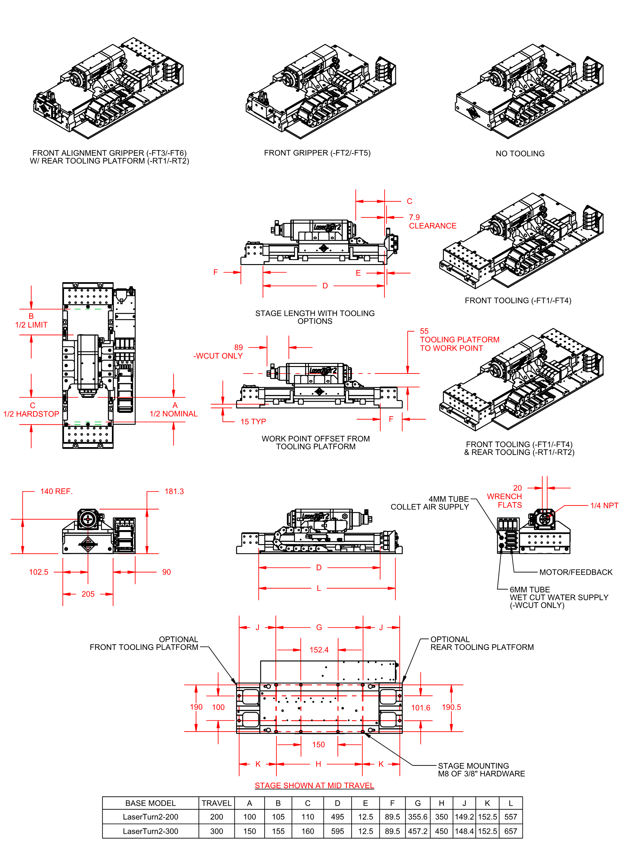 LaserTurn2 與 LaserTurn5 兩個平台,支援不同價格與性能需求;每個產品皆具備自動化材料處理功能與模組化加工平台;LaserTurn2 擁有更小的體積與較低的承載能力,但提供與 LaserTurn5 相同的精度與重複性;LaserTurn5 則具備更深的截面與更大的軸承,能在相同負載條件下提供更高的效率與動態追蹤精度。