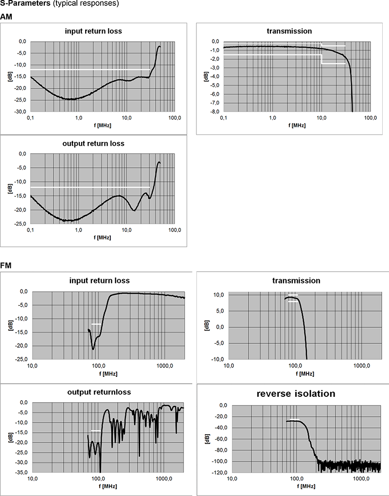 各輸入通道均內建 頻率預選濾波器(Frequency Preselection Filters),用以抑制不必要的雜散訊號;FM、DAB 與 DVB-T 通道更配置 低雜訊、低失真前置放大器,有效補償外部纜線損耗;GNSS 通道支援 虛擬供電(Phantom Power),可供應主動天線電流最高達 200 mA;AM 通道則內建 突波保護器(Surge Arrestor),提供避雷保護。