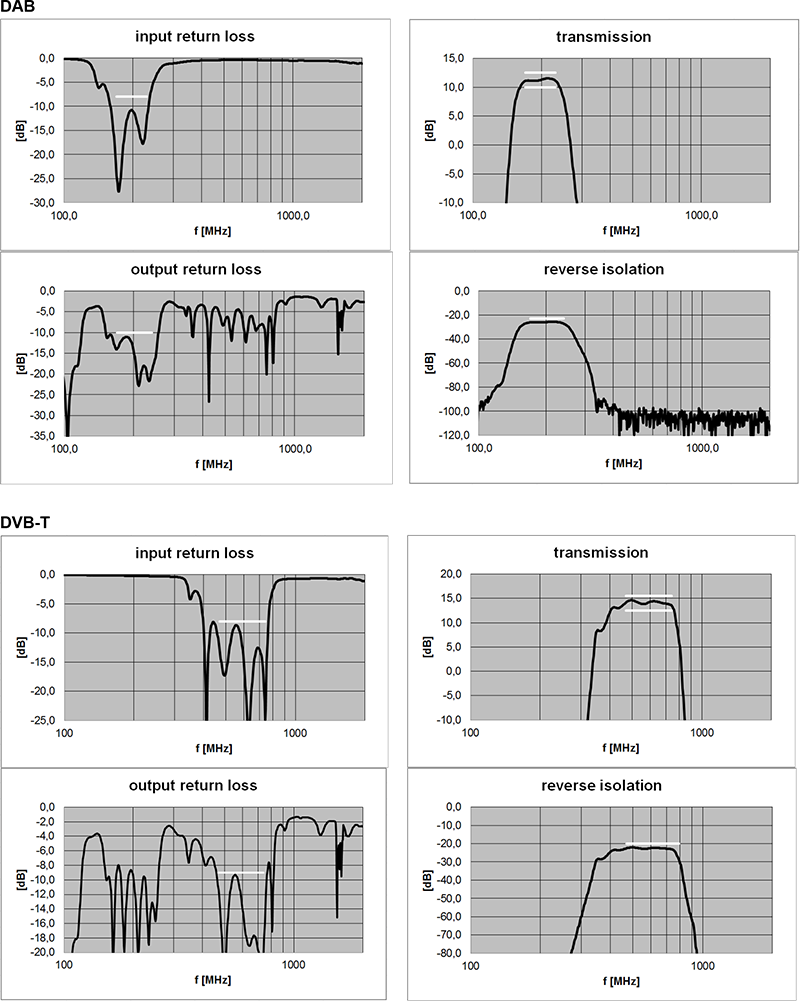 - FM、DAB、DVB-T 通道內建低雜訊、低失真前置放大器