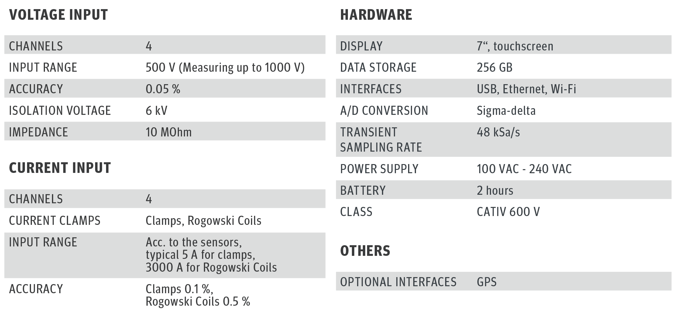 - 符合 EN50160、IEC 61000-4-30 Ed. 3 Class A