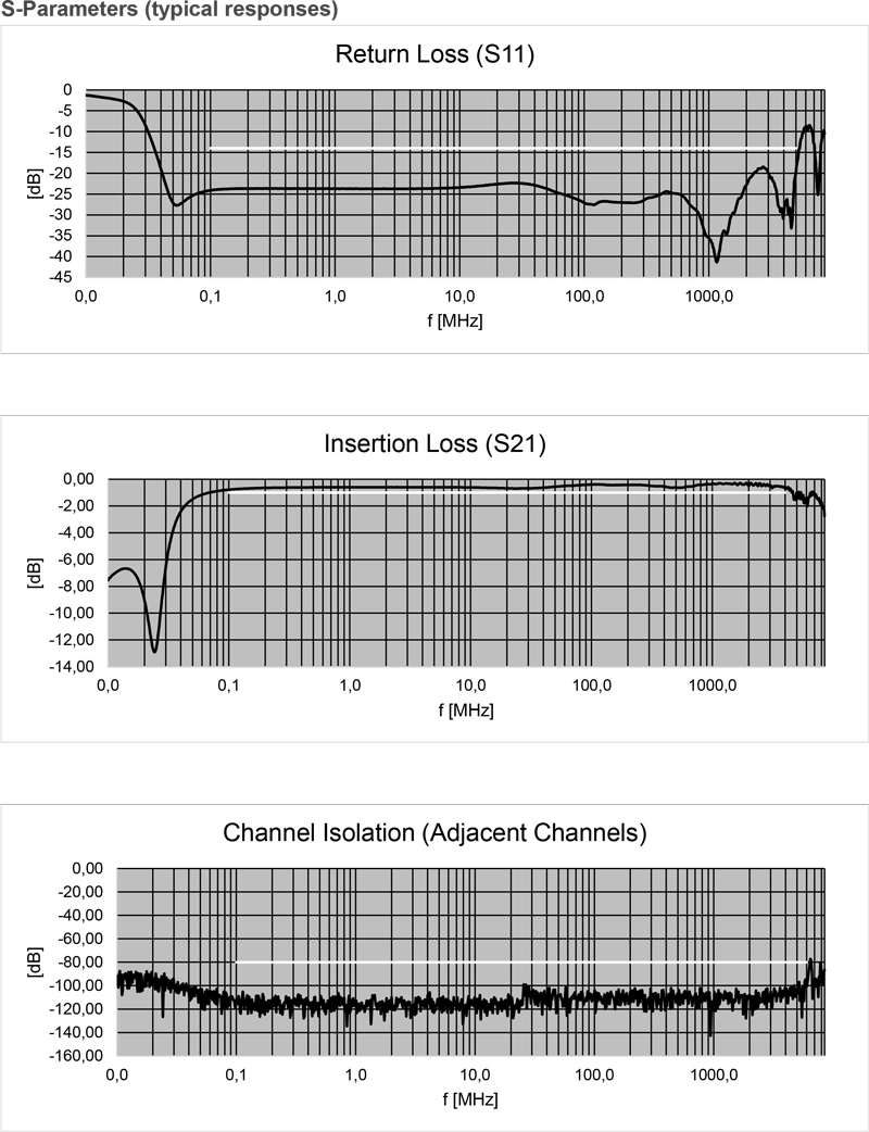 此模組每一射頻通道之通道路徑皆支援 100 kHz 至 8500 MHz 超寬頻頻率範圍,涵蓋現行所有主流廣播(Broadcast)、行動通訊(Cellular Radio)與無線通訊(Wireless Communication)標準,確保測試相容性與未來性。