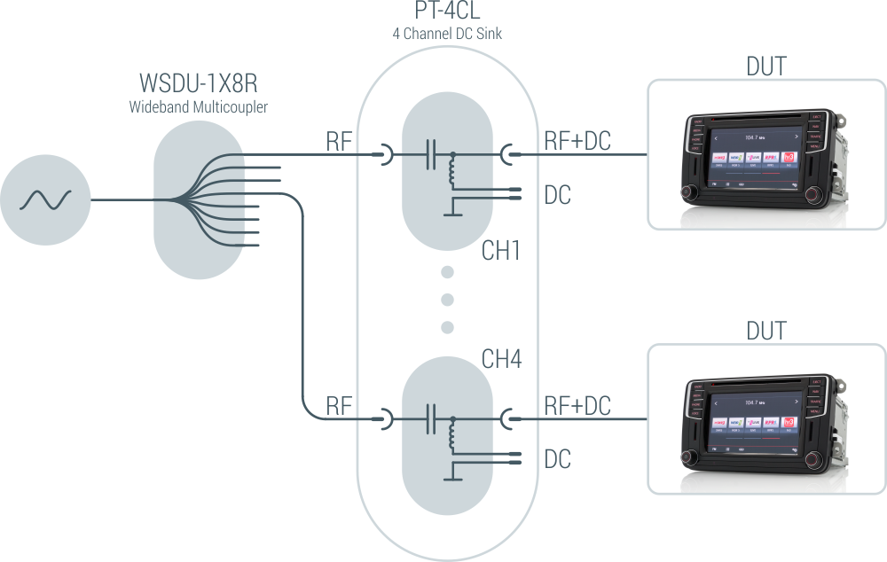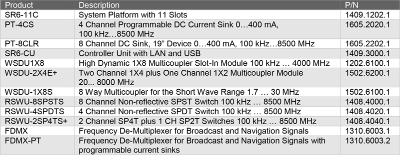 PT-4CL 可與其他插槽模組共同整合至 SR6-11C 系統平台中,支援與 WSDU 系列寬頻訊號處理模組 及/或 RSWU 系列射頻切換模組 搭配使用,能依不同測試目標靈活擴充通道數與功能模組,提供資訊娛樂元件之多樣化且可擴充之測試解決方案。
