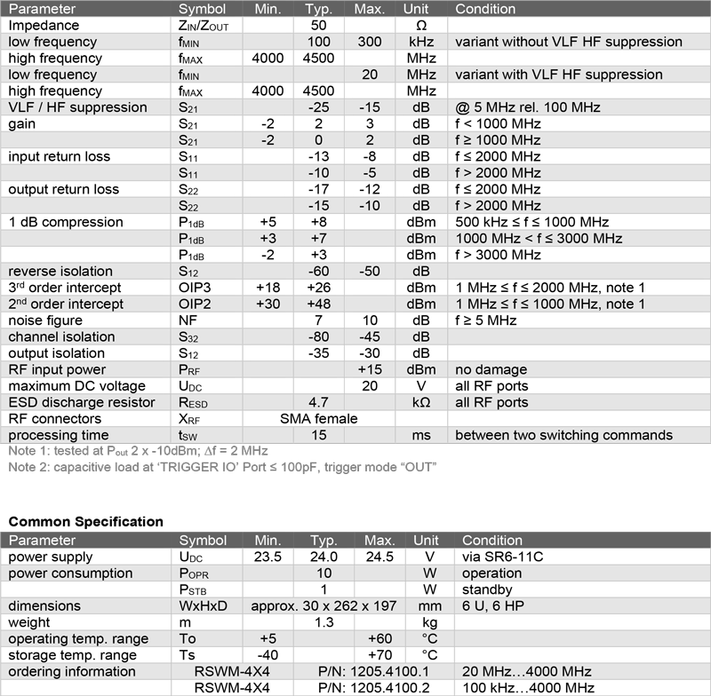 其中 20 MHz 至 4000 MHz 的版本於每個輸入端皆內建高通濾波器(High Pass Filter),可有效抑制來自當地 AM 廣播電台等低頻與高頻訊號;而 100 kHz 至 4000 MHz 的版本涵蓋完整頻段,包含 AM 頻段,可完整傳輸包括 GNSS(全球導航衛星系統)在內的廣播訊號,適用於各類訊號路由應用。