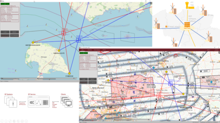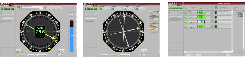 DF Commander 軟體的主要用途是從標準個人電腦上進行多個 DF 通道與 DF 系統的遠端控制與監控,該軟體可視覺化顯示測向資料,例如:方位角、訊號強度與相應通道的頻率,方位頁面的設計簡單且便於使用,可依塔台窗外視野調整羅盤方向,讓控制人員更容易判讀;此外,該軟體亦可同時監控所有已連接通道的狀態,這一功能對於 DF 系統的技術監控與維護亦非常有幫助。