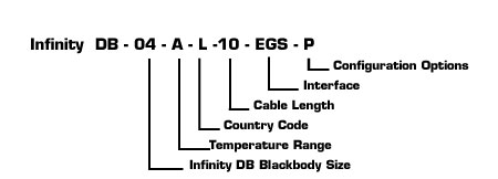 SBIR 根據客戶可選擇的六種不同特性來分類黑體型號;這些特性包括黑體尺寸、溫度範圍、國家的電源線類型、指定的電纜長度、通訊介面選項與配置選項。