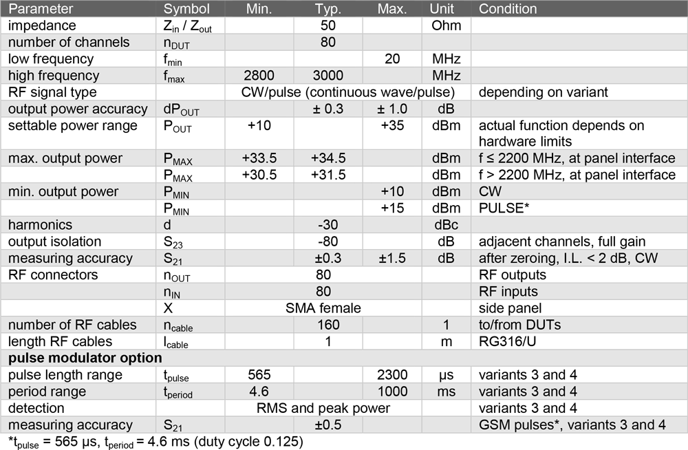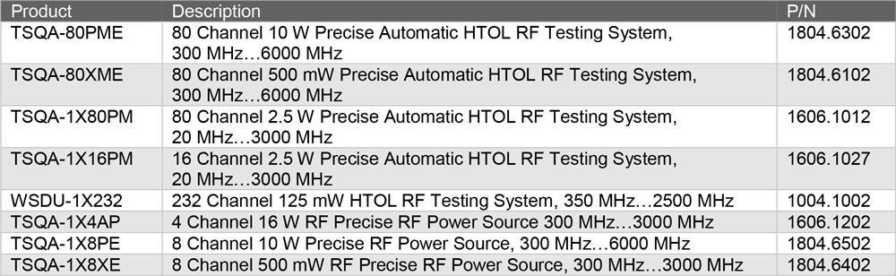 執行 HTOL 測試與電源壓力測試時,需搭配具備多通道輸出能力的 RF 系統,並確保每個通道能長時間穩定地輸出高精度功率;TSQA-1X80PM是一款專為此應用設計的小型化、自動化 HTOL RF 量測系統,支援20 MHz 至 3000 MHz 頻段,採用50 歐姆架構;系統內建80 個獨立 RF 通道,每通道可提供最高3 瓦輸出功率,實際可達 DUT 輸入端的功率為2.5 瓦,可完全滿足嚴格的 HTOL 測試需求。