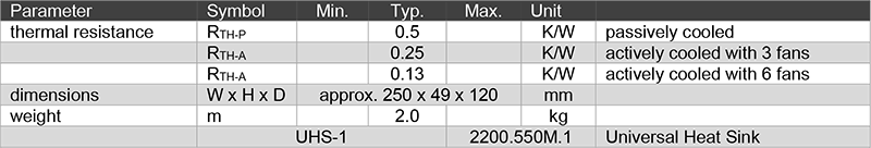 UHS-1 通用散熱器是一款小型化、高效能設計的散熱裝置,專為 Becker 旗下中功率與高功率 AMP-L 放大器模組的熱管理應用所設計;其平面側面可靈活安裝最多兩個不同 AMP-L 模組,具備高度模組化彈性。