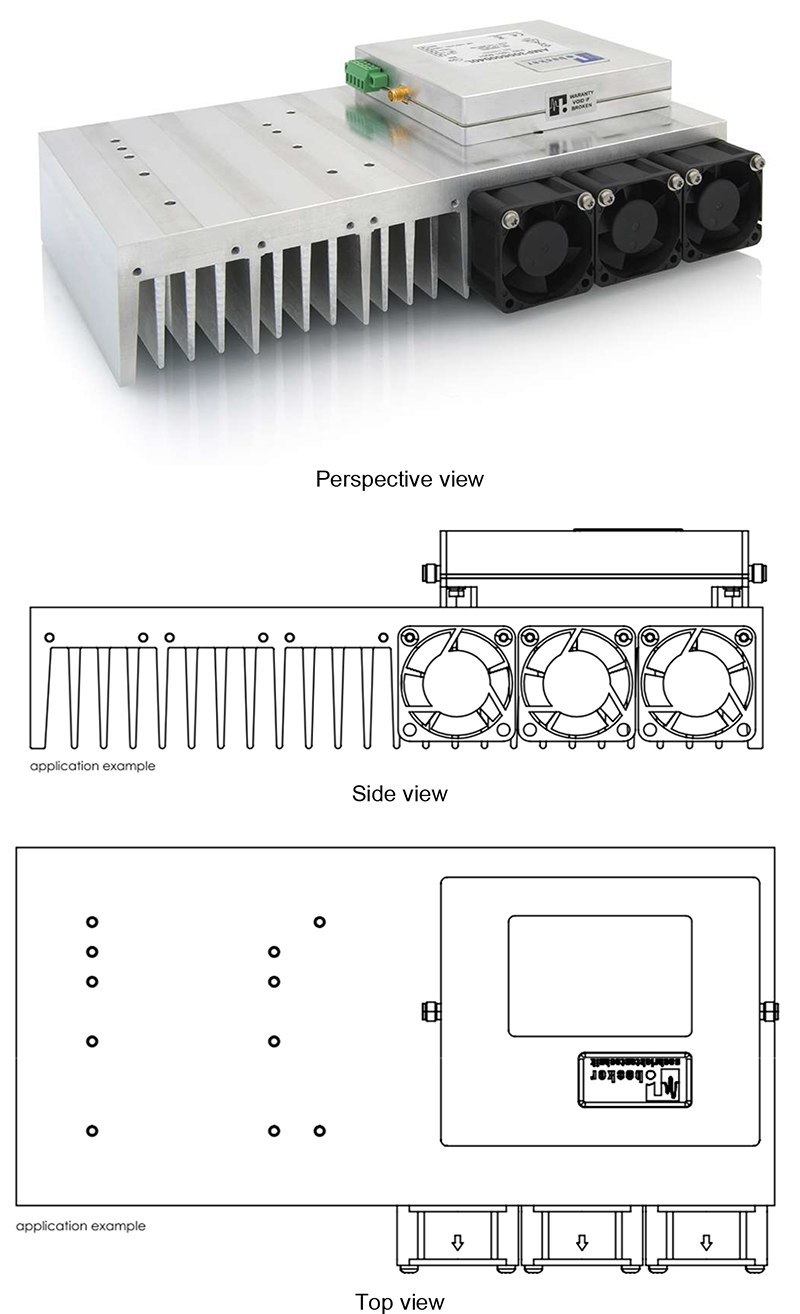 應用示意二:通用散熱器搭配風扇與兩組放大器模組