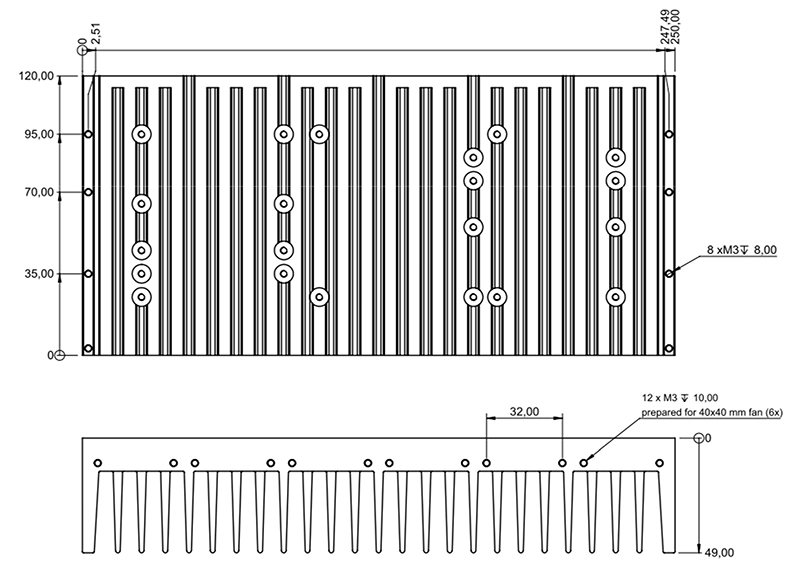 若應用需高效散熱,可加裝最多六組風扇以強化冷卻效能;當使用者應用需採用主動式散熱方案時,散熱器亦可預先出廠安裝風扇模組;另可依照客戶需求,提供預裝固定螺絲的版本,加速整合與安裝流程。其底部設計有標準安裝孔位,便於使用者將此散熱器嵌入既有設備或機箱中,提升系統整合便利性。