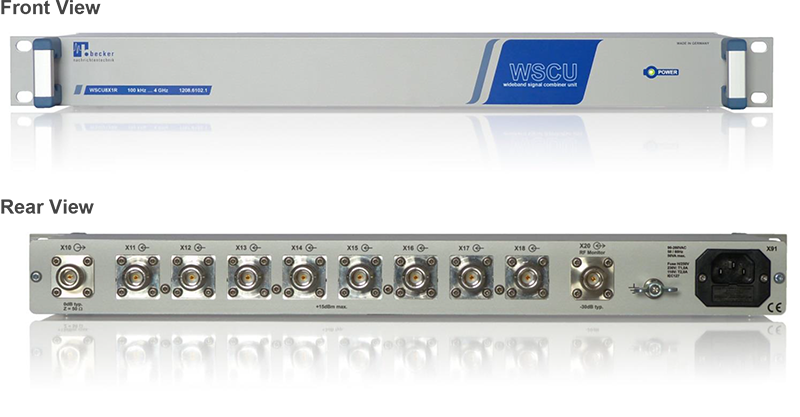 WSCU-8X1R 為一款寬頻高動態射頻合路器,可將最多 8 路訊號源(如射頻產生器或天線訊號)合路至一個共用輸出埠;其涵蓋頻率範圍自 100 kHz 至 4000 MHz,可支援從長波至 UHF 的廣播與通訊應用,適用於研發、最終測試與接收系統等多元場景。