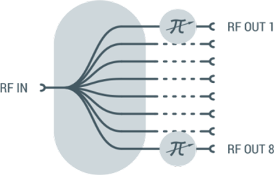 此模組每一輸出埠皆配備可程控衰減器,其衰減範圍高達 95.25 dB,可以 0.25 dB 為步進進行微調,並可獨立設定各通道電平,滿足各種精細調整需求,是進行多設備同步測試時的理想選擇。