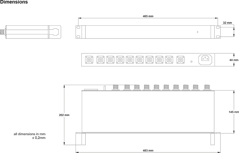 此機種透過內建的寬頻低雜訊放大器,將輸入訊號線性放大後,無損地分配至八組等效輸出,即便微弱訊號與高功率訊號並存,亦能維持良好線性度;硬體結構提供優異的相位與增益平衡,所有埠口皆採用 N 型母頭。