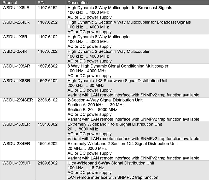 WSDU-1X8LR 為一款寬頻分配器(Multicoupler),可將單一輸入埠的射頻訊號無損分配至八個輸出埠,覆蓋頻率範圍達 100 kHz 至 4000 MHz;此機種具備高動態範圍設計與小型化結構,特別適用於從長波(Long Wave)至 UHF 頻段的廣播訊號分配需求。內建訊號監控埠,可於系統運行期間即時監測與維護,適合導入於複雜系統中。