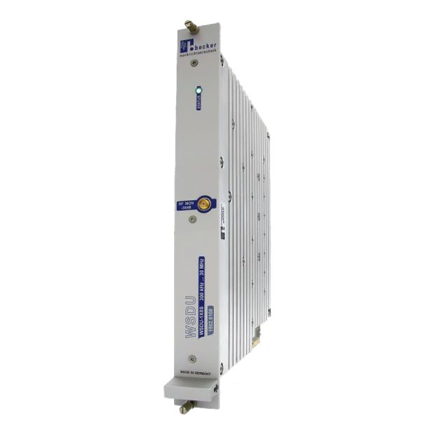 插槽式模組 WSDU-1X8S 為一款寬頻高動態多工耦合器,專為專業短波接收系統設計,具備高線性、高輸出隔離度與抗雜訊干擾能力;其頻率涵蓋範圍廣泛,自 300 kHz 至 30 MHz,支援高靈敏度接收應用;WSDU-1X8S 採用低雜訊、高動態放大器架構,確保輸出訊號在八個埠上等級無損耗分配,並內建頻段通帶濾波器與電路保護機制,大幅提升系統穩定性與可靠性。